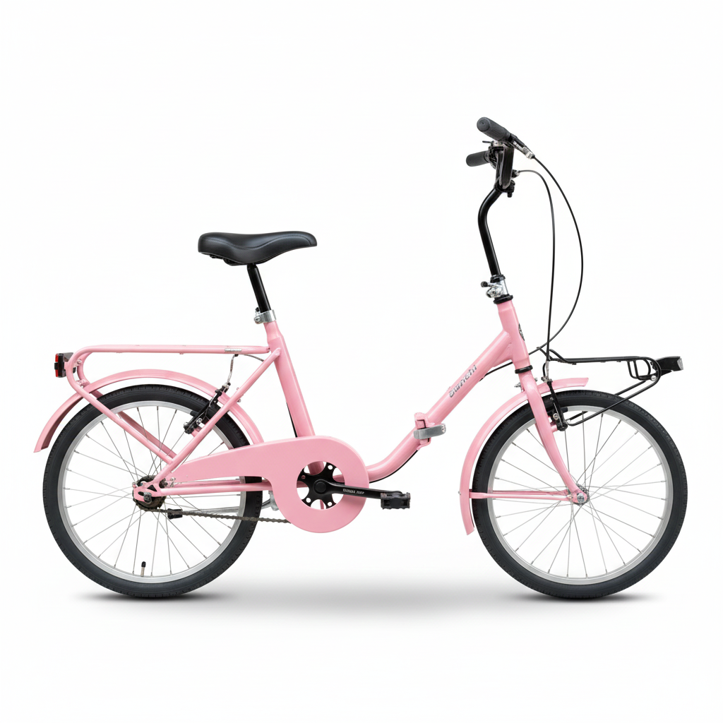 20" Folding Bike, Hi-Ten Frame, Pink, LED V-Brake, Mudguards
