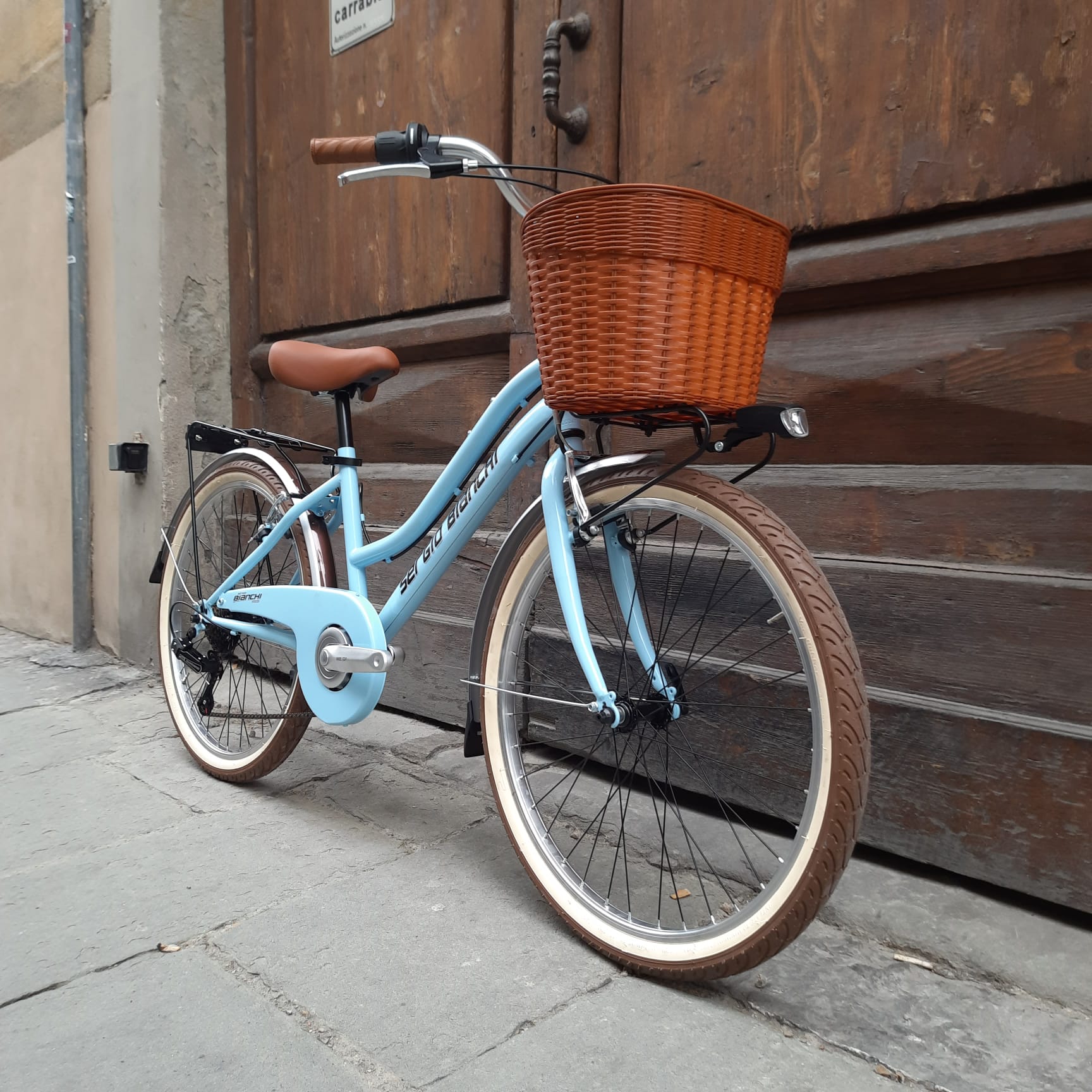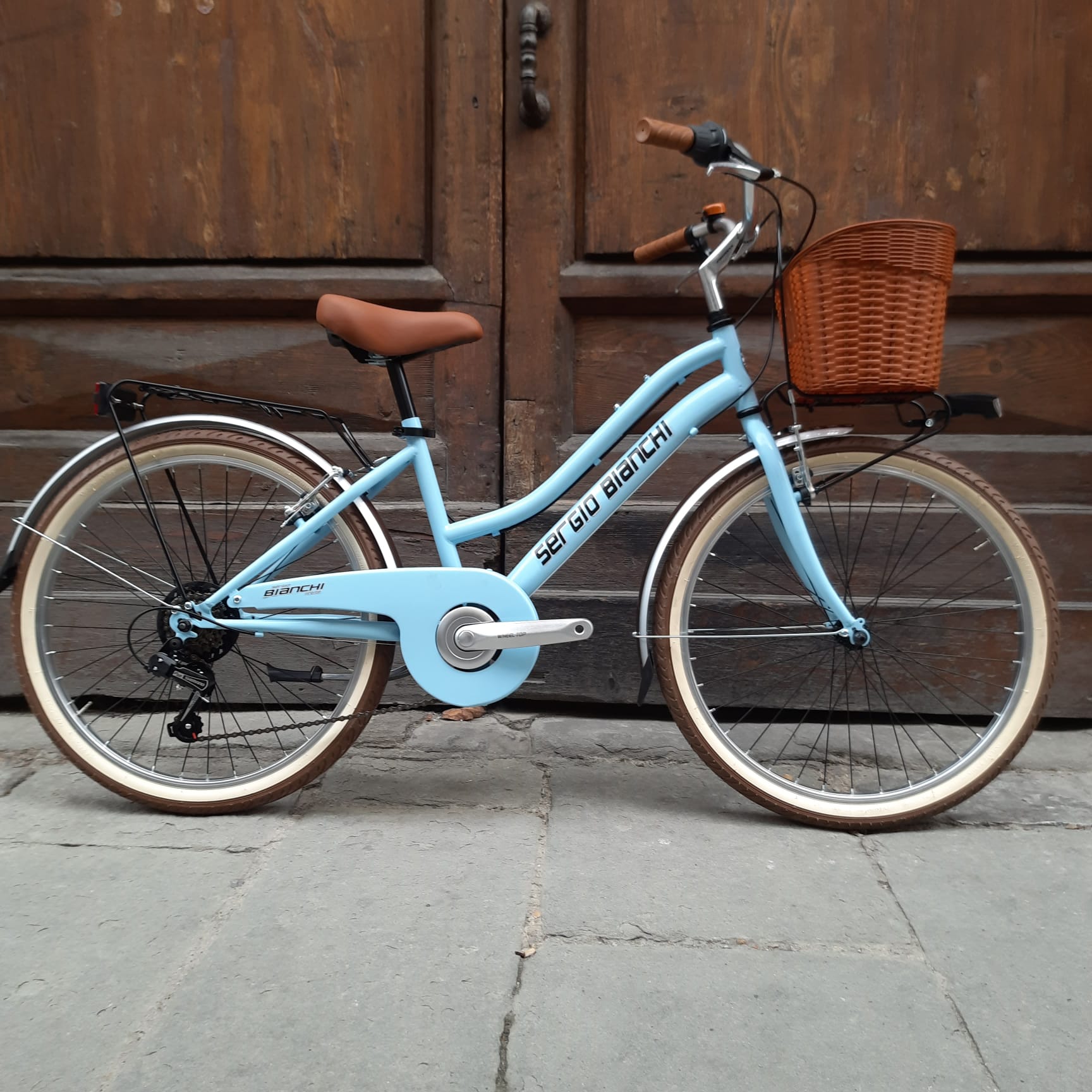 Sergio Bianchi's 24-inch vintage bike for girls combines the classic style of vintage bikes with the comfort and safety of modern technology. Perfect for girls aged 9 to 12, this retro-designed bike stands out with its timeless elegance, meticulous details, and practical accessories that make it unique and functional.