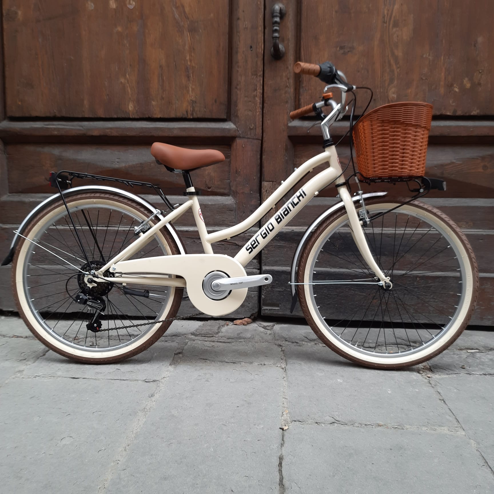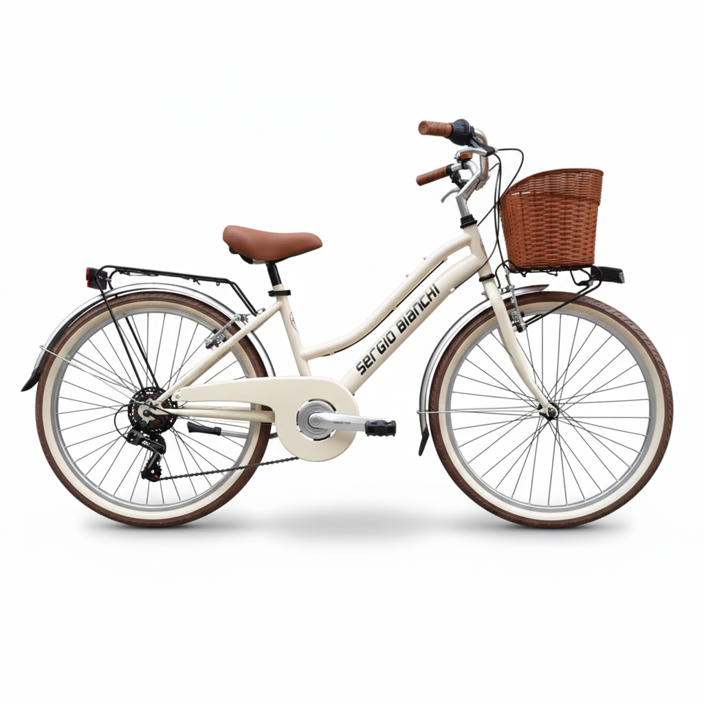 Sergio Bianchi's 24-inch vintage bike for girls combines the classic style of vintage bikes with the comfort and safety of modern technology. Perfect for girls aged 9 to 12, this retro-designed bike stands out with its timeless elegance, meticulous details, and practical accessories that make it unique and functional.