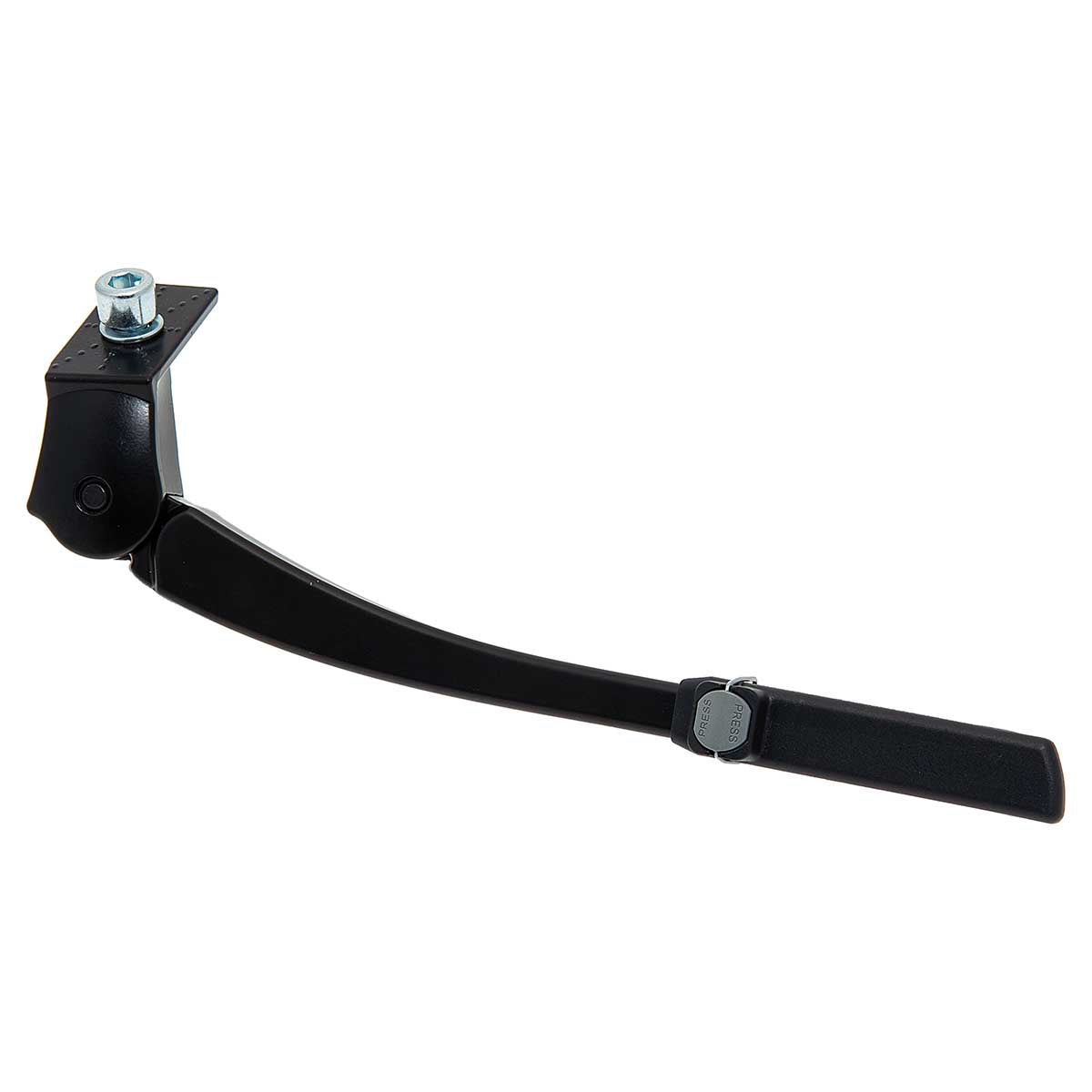 The adjustable black aluminum side stand offers maximum versatility for 20" to 28" bikes. Lightweight and durable construction with a sleek black finish, compatible with city bikes, MTBs, trekking and folding bikes.