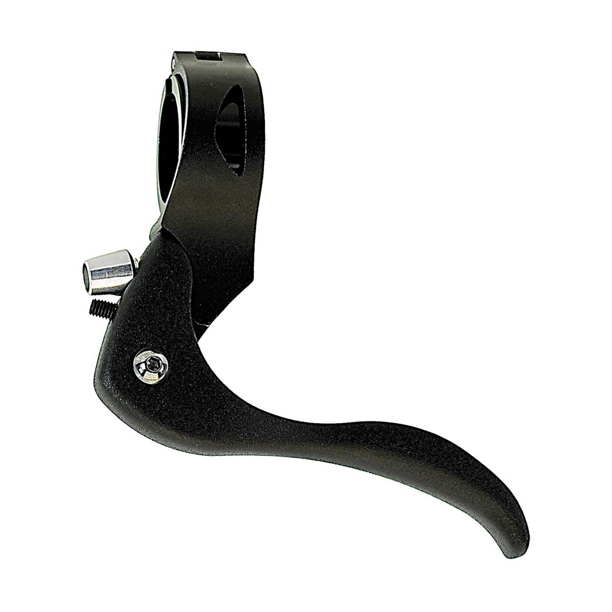 This pair of black aluminum auxiliary brake levers, compatible with 23.8-31.8 mm bars, is the ideal solution for adding additional leverage to road handlebars. Includes adapters to fit various handlebar sizes, ensuring versatility and safety while riding.