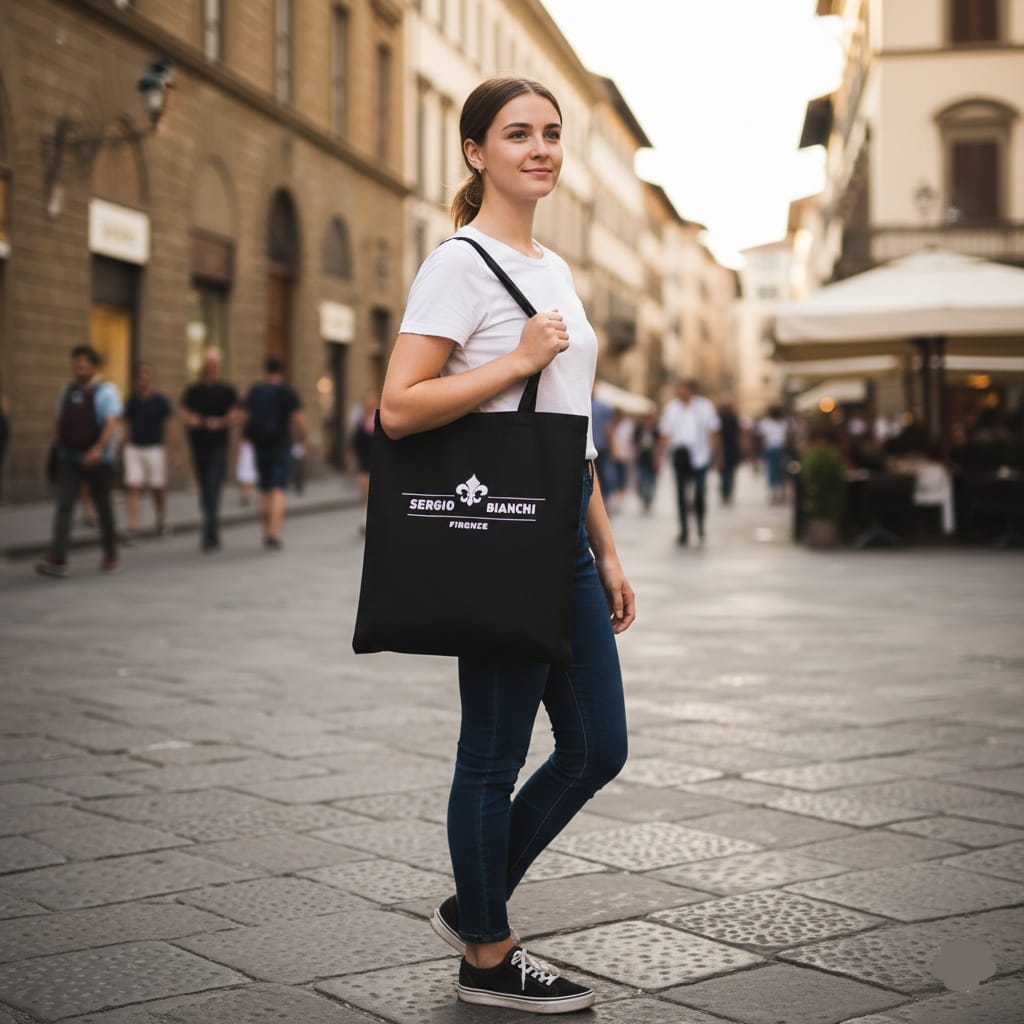 The Sergio Bianchi Firenze Shopper is the perfect accessory for those who explore the city by bike with style and awareness. Made of natural cotton , this bag combines Florentine artisan tradition with a passion for cycling.