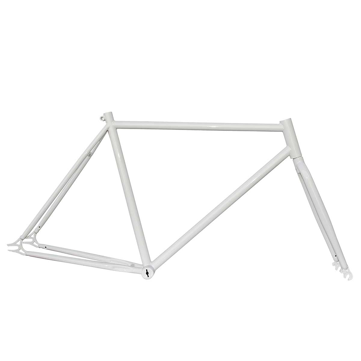 Fixed gear frame in glossy white steel with TIG welding and 1" fork - the perfect base to build your own custom fixed gear bike with the highest build quality and a bright classic look.