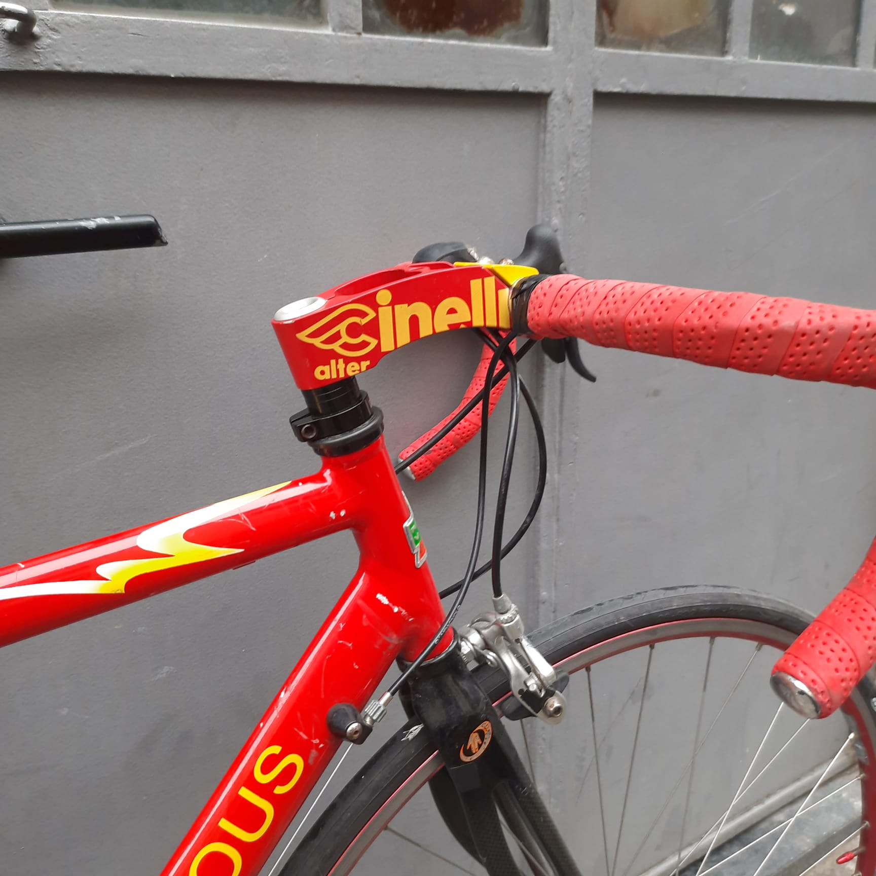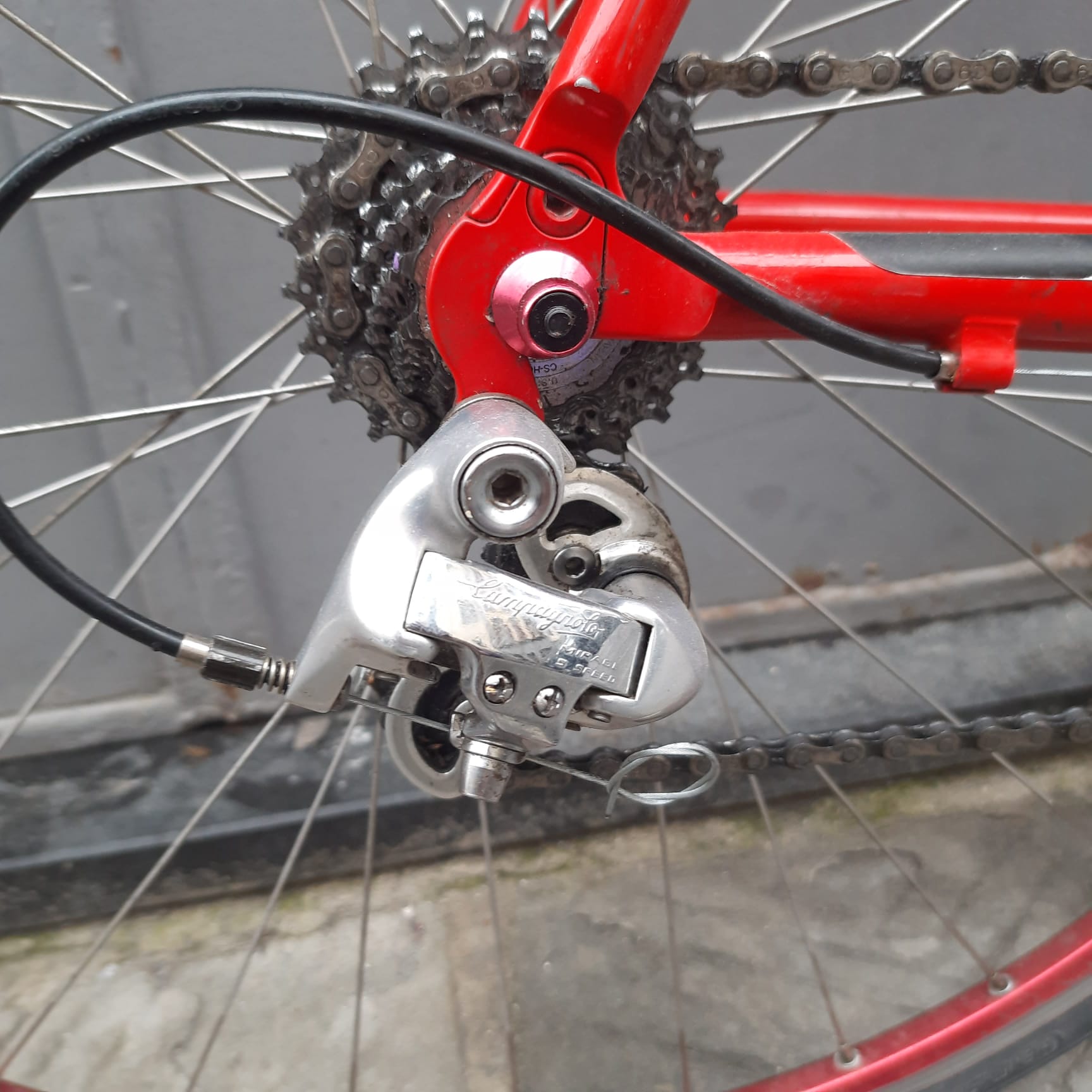 Bici da corsa di alta qualità con telaio in alluminio 7000 e componenti Campagnolo Mirage, perfetta per ciclisti appassionati che cercano prestazioni e affidabilità. Questa bici usata e revisionata combina leggerezza, reattività e il prestigio dei componenti Campagnolo.