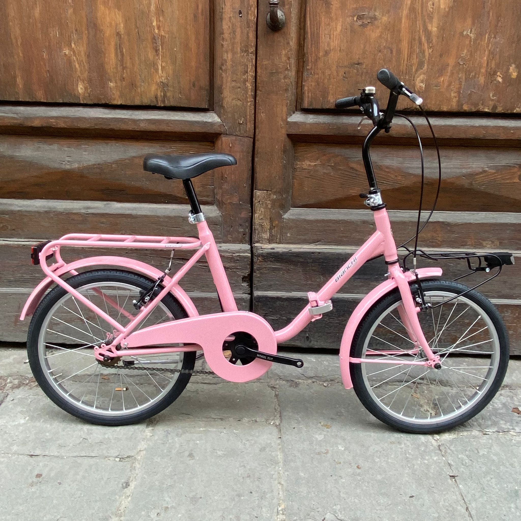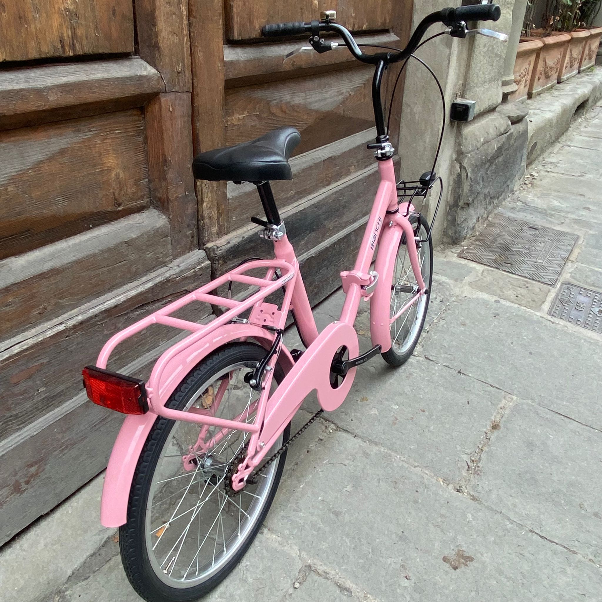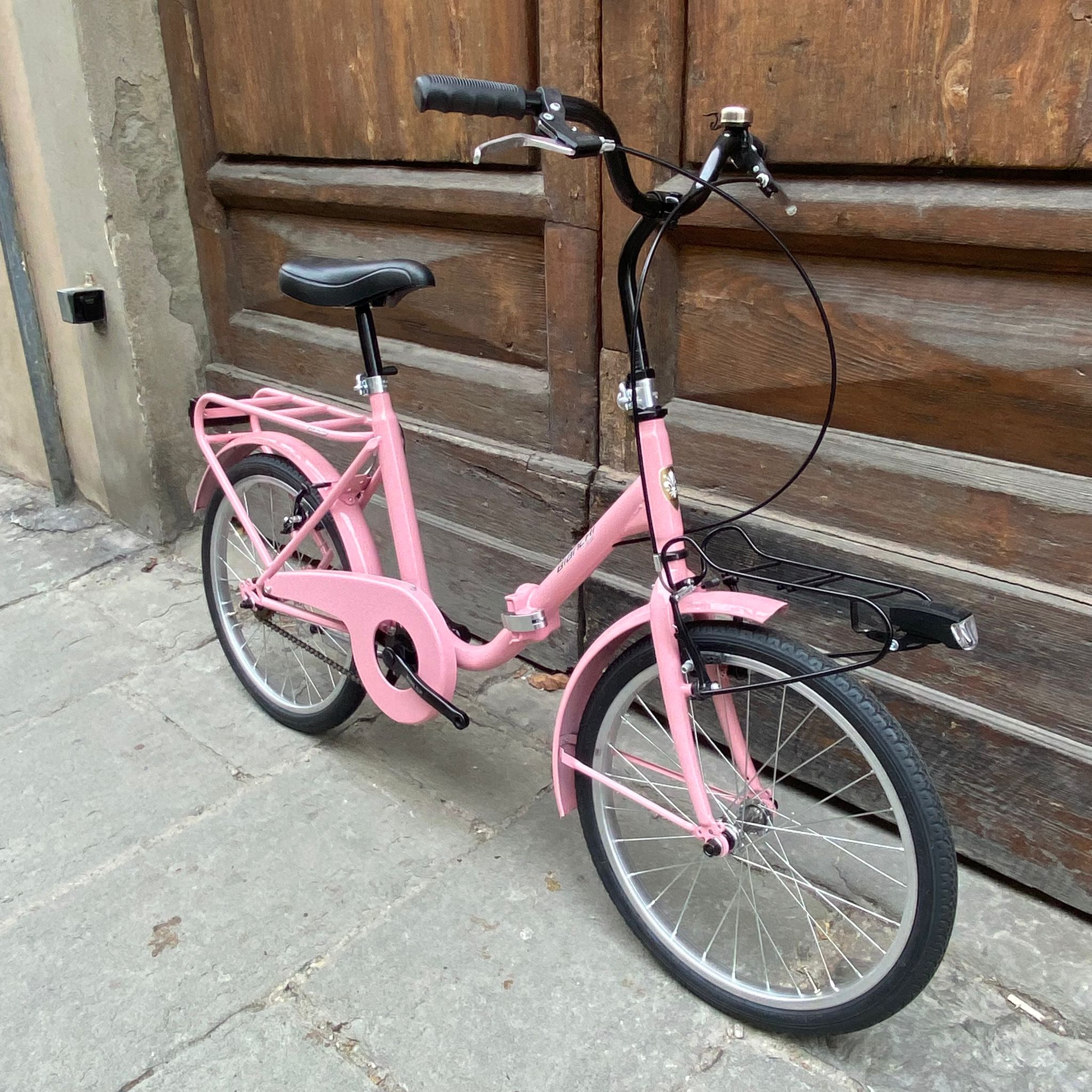 Bici Pieghevole 20" Telaio Hi-Ten - Rosa - V-Brake LED Parafanghi