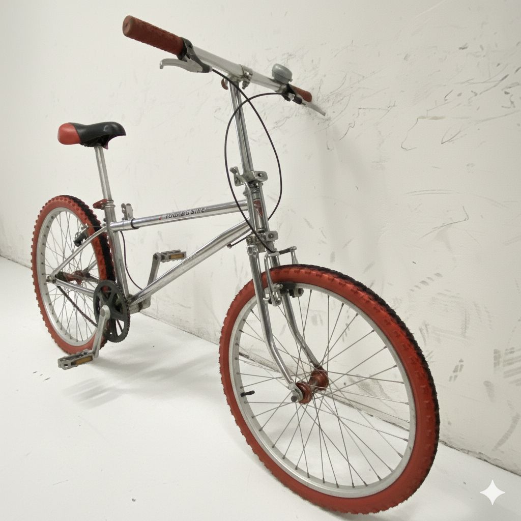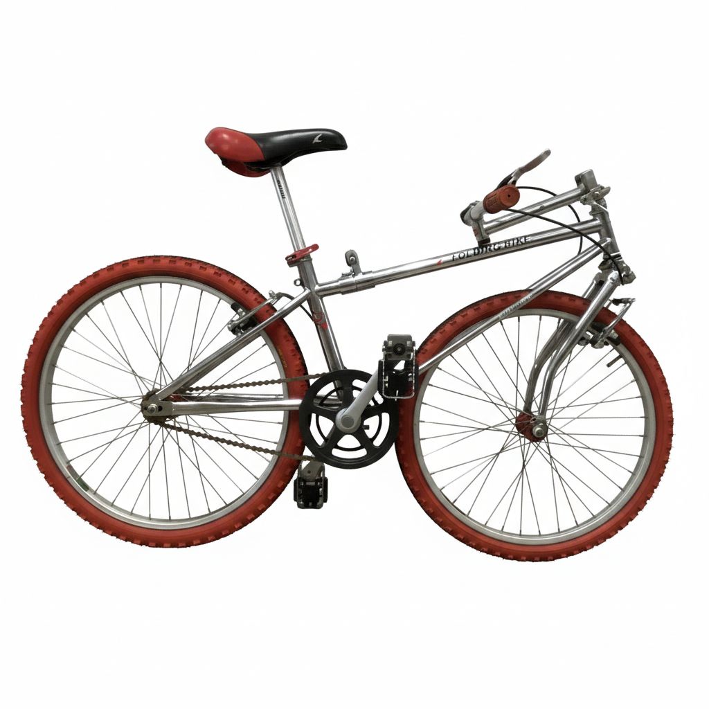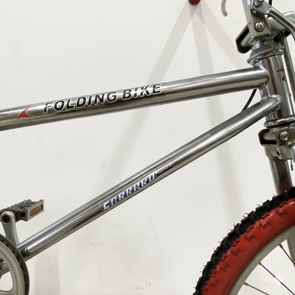 Elegante bici pieghevole cromata Carraro usata dal design vintage, perfetta per la città. Caratterizzata da una combinazione unica di ruote asimmetriche: posteriore da 24" e anteriore da 22", questa bicicletta unisce stile retrò e praticità moderna.