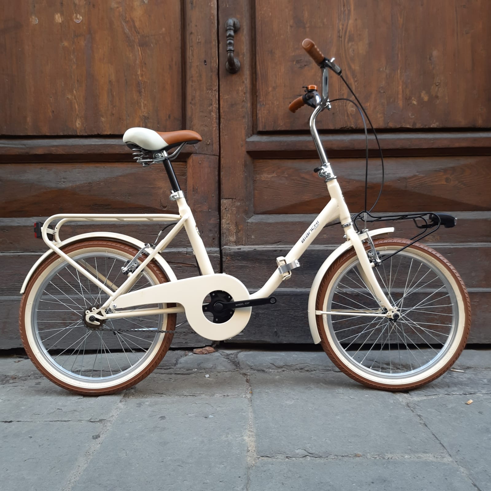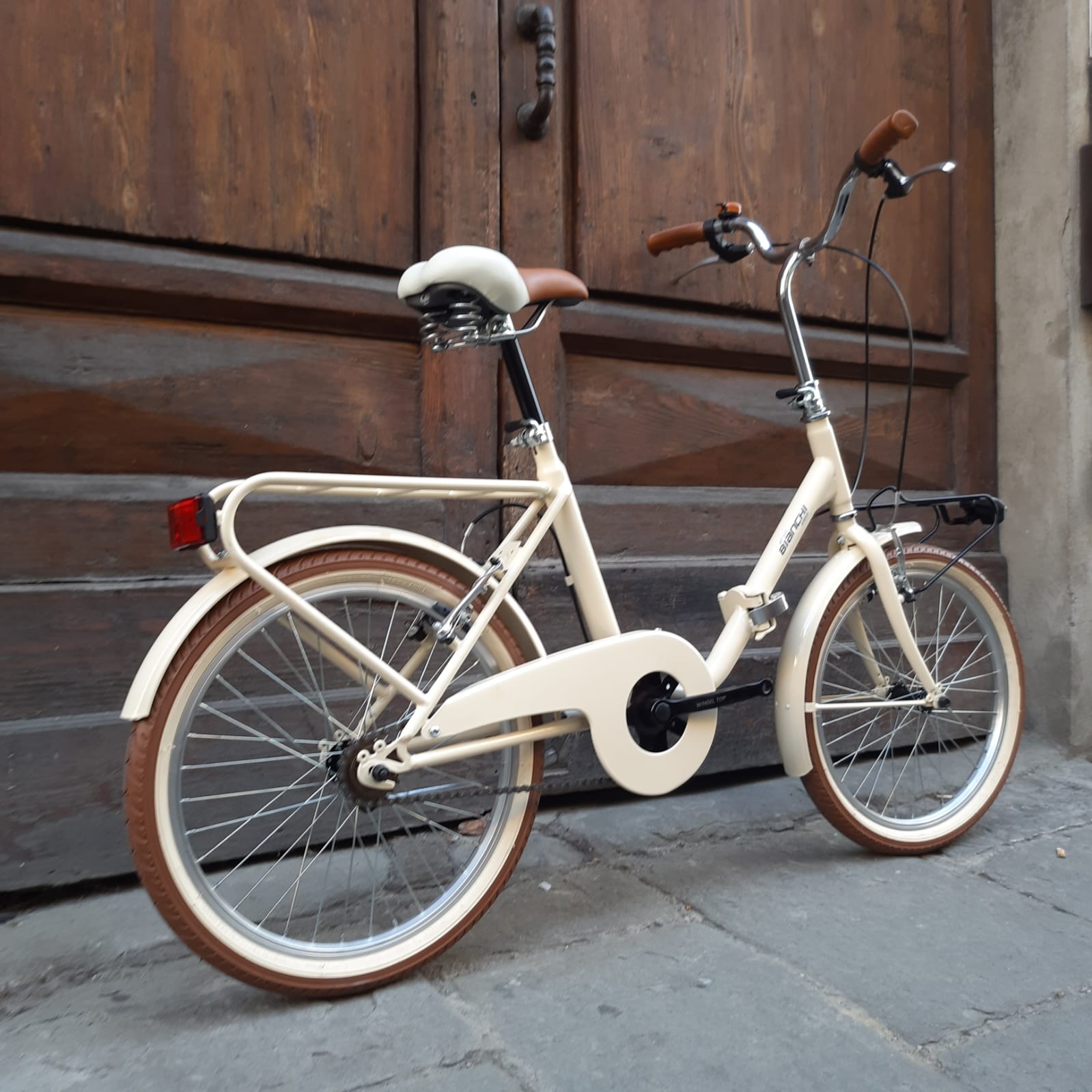 Scopri l'eleganza senza tempo della nostra bici pieghevole vintage color panna, perfetta per chi cerca stile e praticità in città. Un connubio perfetto tra estetica retrò italiana e funzionalità moderne.