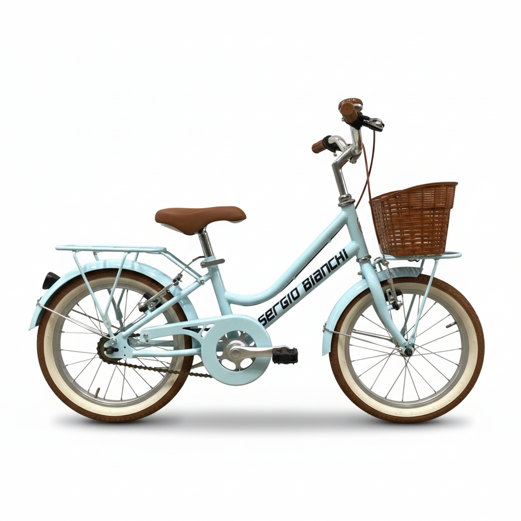 La bicicletta vintage da 16 pollici per bambina di Sergio Bianchi unisce lo stile classico delle bici d'epoca al comfort e alla sicurezza delle tecnologie moderne. Perfetta per bambine dai 4 ai 6 anni, questa bici dal design retrò conquista con la sua eleganza senza tempo e i dettagli curati che la rendono unica.