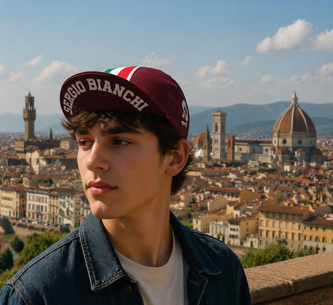 Rendi omaggio alla tradizione italiana con il cappellino da ciclismo "Firenze" in elegante edizione bordeaux. Realizzato in cotone leggero e traspirante, è perfetto per le tue pedalate o come accessorio lifestyle dal gusto vintage.