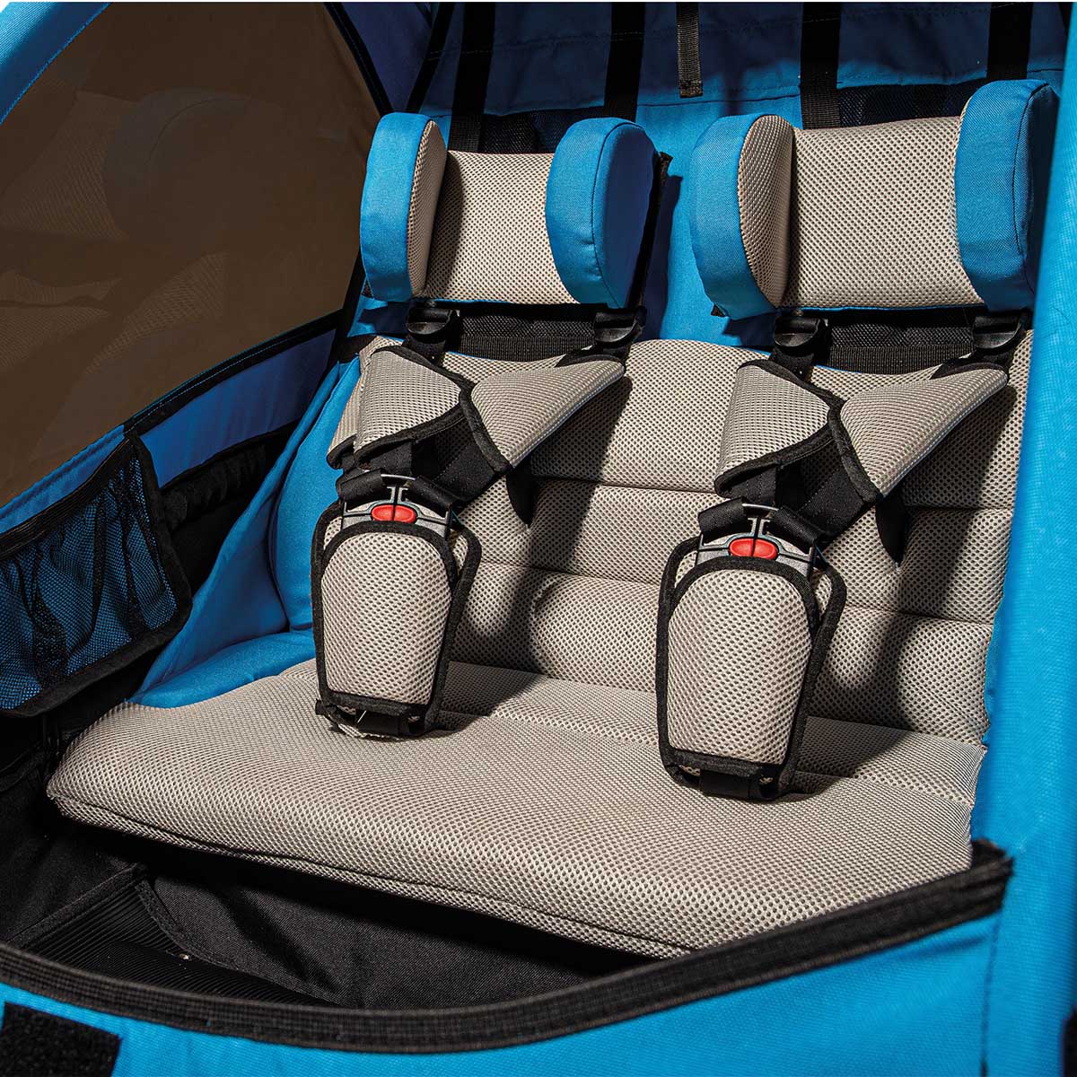 Il carrellino BRN Baby Way è progettato secondo i più elevati standard di sicurezza per il trasporto dei bambini. La struttura rinforzata con barra antiribaltamento, le cinture di sicurezza certificate e il sistema di aggancio sicuro garantiscono tranquillità durante ogni pedalata. L'abitacolo spazioso offre comfort ottimale per due bambini, con sedute ergonomiche e protezione completa dagli agenti atmosferici.
