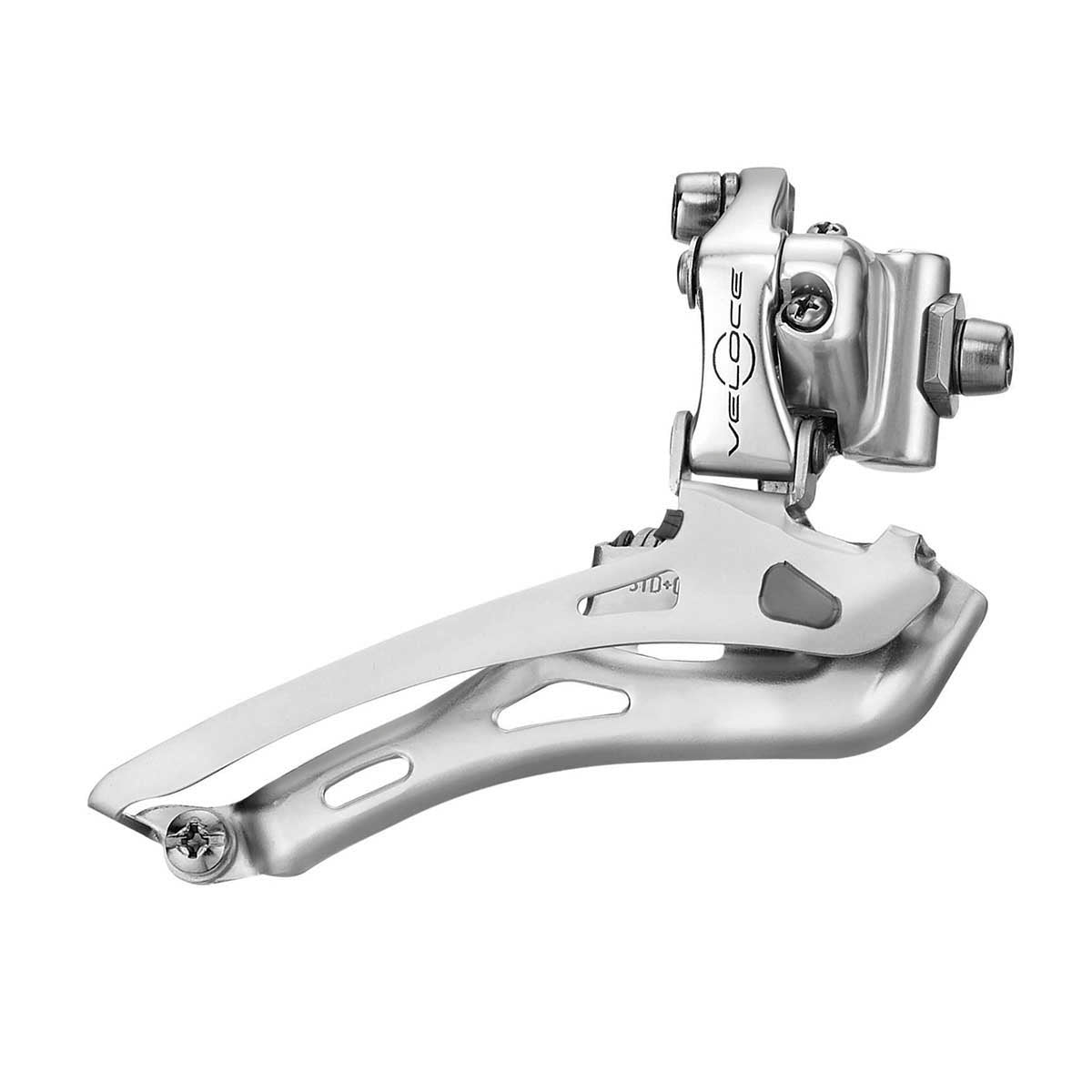 Deragliatore anteriore Campagnolo Veloce in finitura silver con attacco a saldare, perfetto per bici da corsa classiche e moderne.