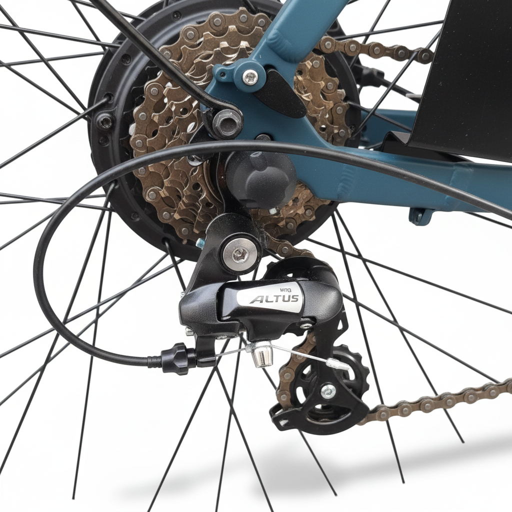 - Cambio: 7 Velocità Shimano per adattarsi a ogni tipo di terreno