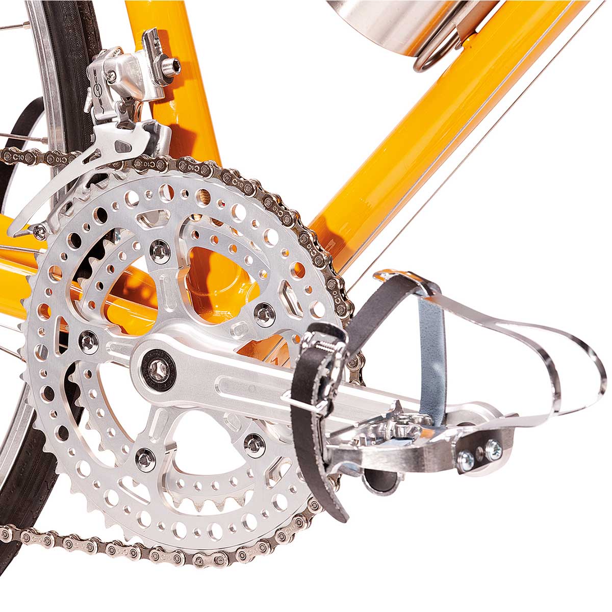Guarnitura Vintage Hole Double (Dx + Sx) in finitura silver, il componente premium per equipaggiare la tua bici vintage con un sistema di trasmissione affidabile ed esteticamente raffinato.