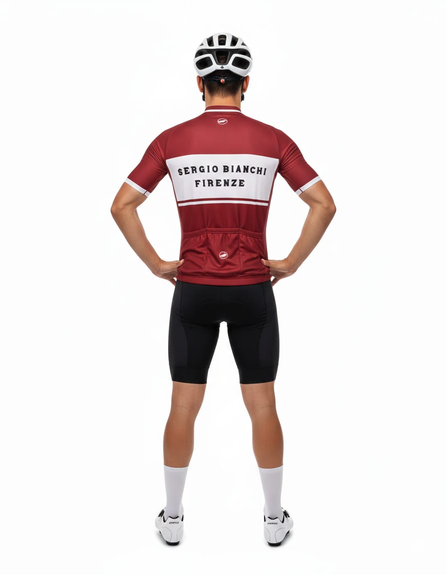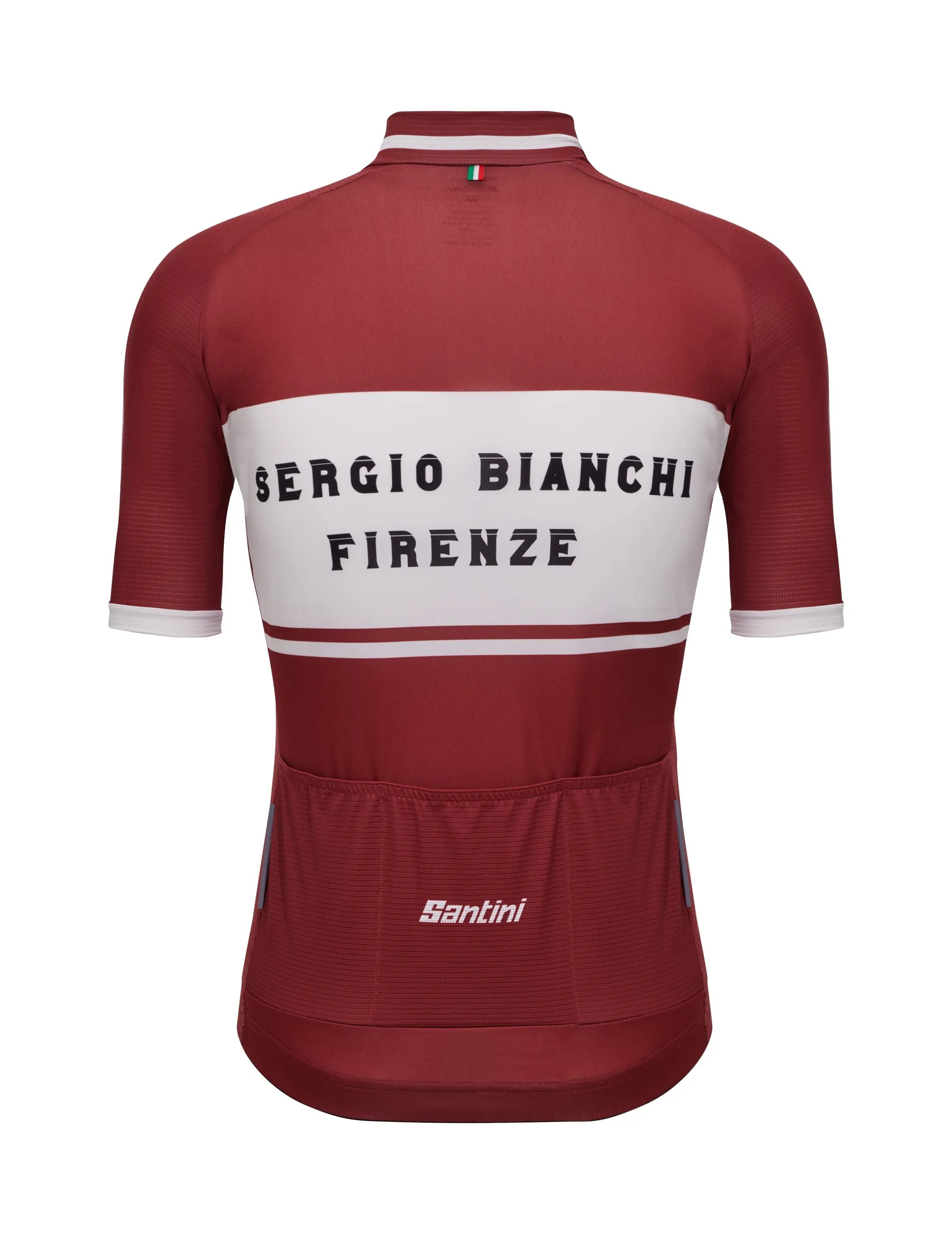 La maglia da ciclismo Sergio Bianchi in elegante colorazione bordeaux è realizzata da Santini con materiali leggeri ed elastici per alte prestazioni senza sacrificare il comfort.