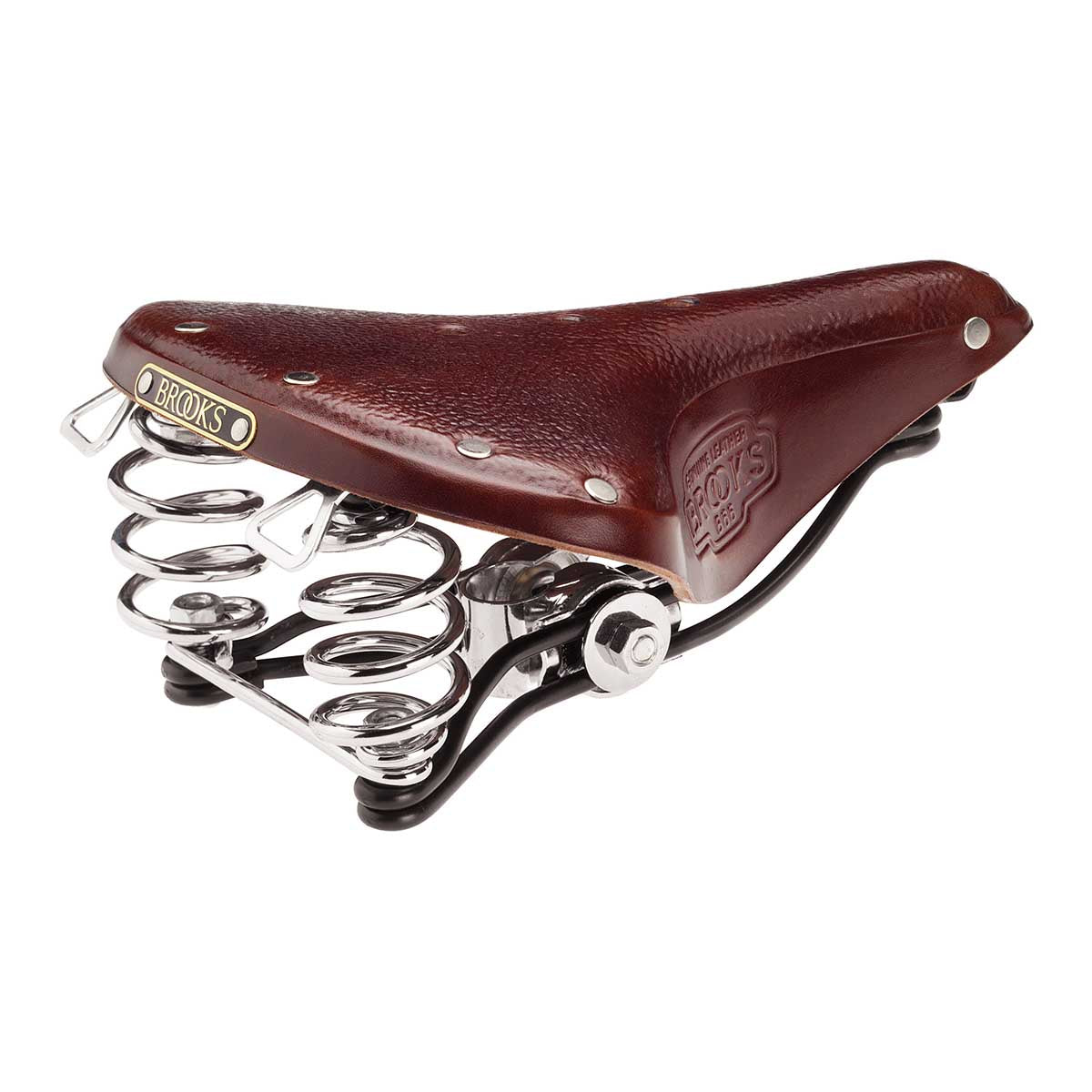 Il caratteristico telaio a doppio montante cromato e l'ammortizzazione classica con molle garantiscono un comfort eccezionale, particolarmente apprezzato nelle posizioni di guida erette tipiche delle bici da città, vintage e touring. Il cuoio di colore marrone conferisce un'estetica calda e autentica che si abbina perfettamente alle biciclette classiche e vintage.